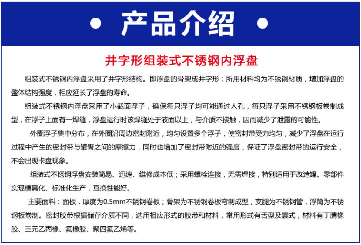 不銹鋼內(nèi)浮頂 日期:2018-09-05 / 人氣:6722 ←上一篇不銹鋼內(nèi)浮盤下一篇:已經(jīng)沒有了 聯(lián)系我們 Contact US 中國江蘇連云港海州區(qū)洪門工業(yè)園華陽路西首 0518―85266899 17851220999 13338983555 17851220999@163.com 產(chǎn)品中心 Products 陸用流體裝卸臂(鶴管) LNG超低溫鶴管 鶴管 全接液浮盤 不銹鋼內(nèi)浮盤 不銹鋼內(nèi)浮頂 內(nèi)浮盤(浮盤) 緊急拉斷閥 旋轉(zhuǎn)接頭(萬向節(jié)) 干式閥(API接頭) 彈簧缸平衡系統(tǒng) 快速接頭 定量裝車控制系統(tǒng) 鋼結(jié)構(gòu)裝卸平臺(棧橋) 活動梯 船用裝卸臂 網(wǎng)殼 油罐附件 鶴管附件