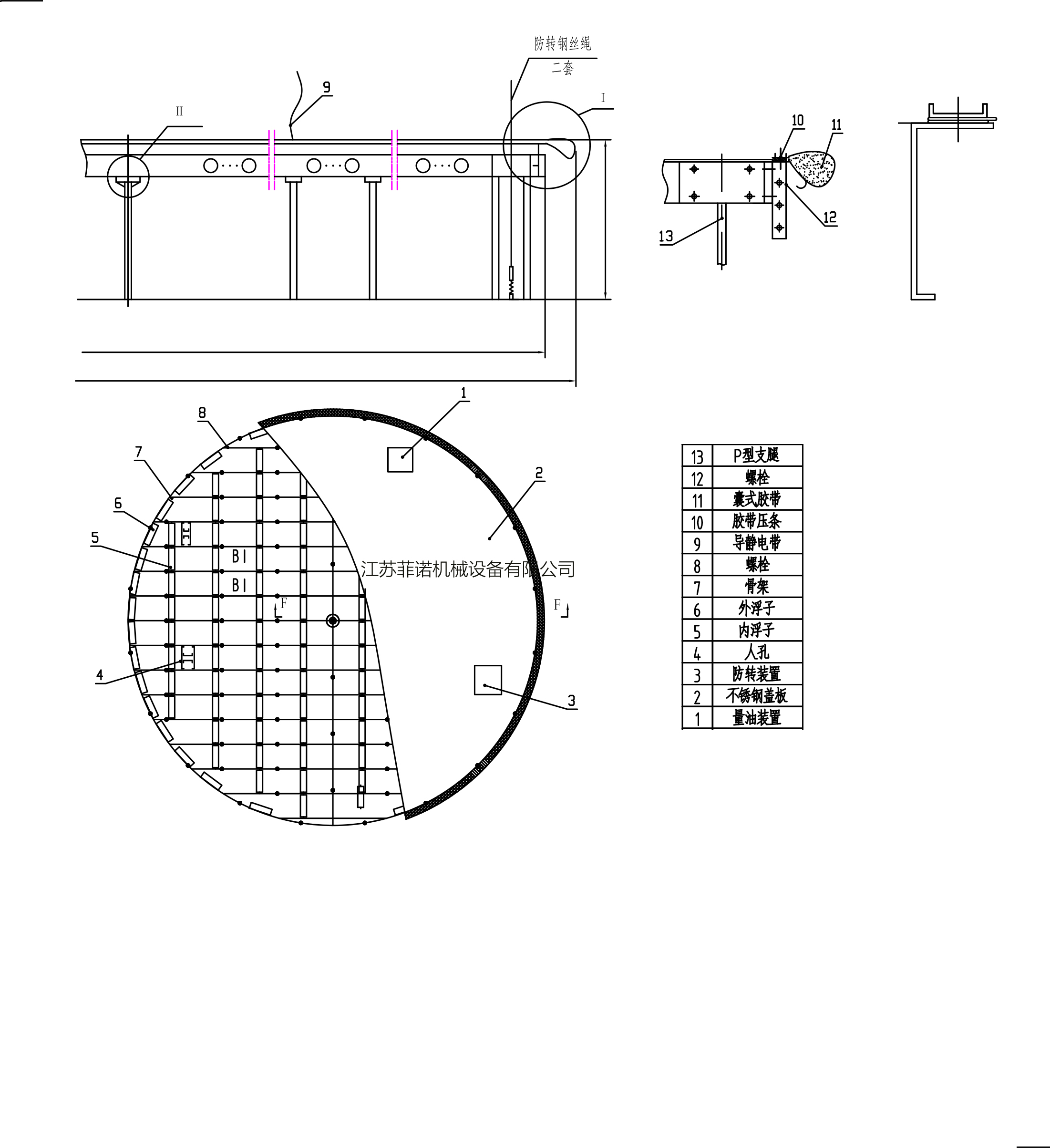 組裝式不銹鋼內(nèi)浮盤采用了井字形結(jié)構(gòu)。即浮盤的骨架成井字形;所用材料均為不銹鋼材質(zhì),增加浮盤的整體結(jié)構(gòu)強(qiáng)度,相應(yīng)延長了浮盤的使用壽命。